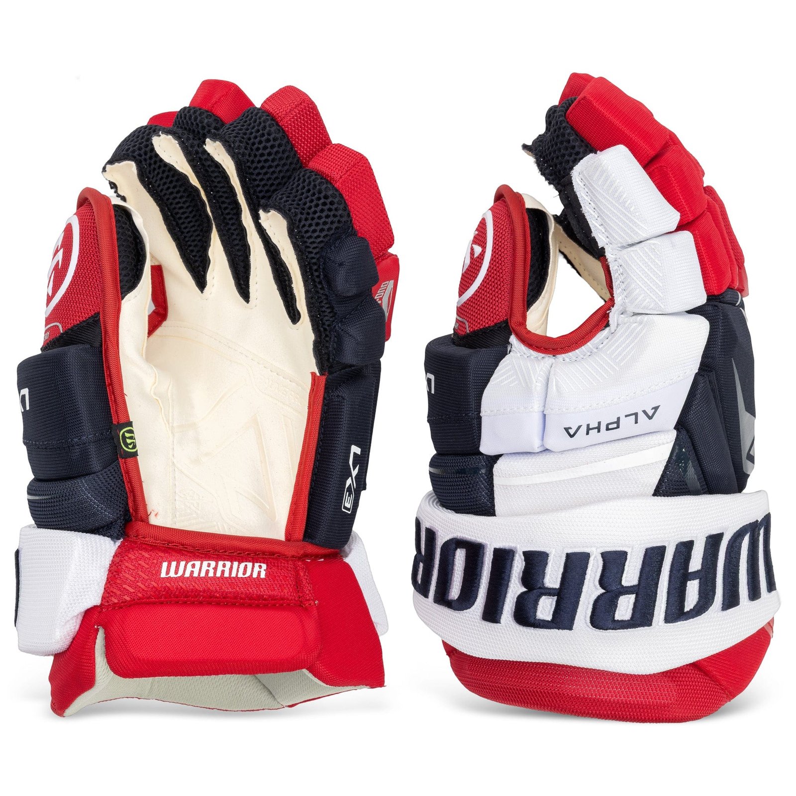 Warrior Alpha LX3 Pro Stock Senior Hockey Gloves – Winnipeg Jets Red/Royal/White
